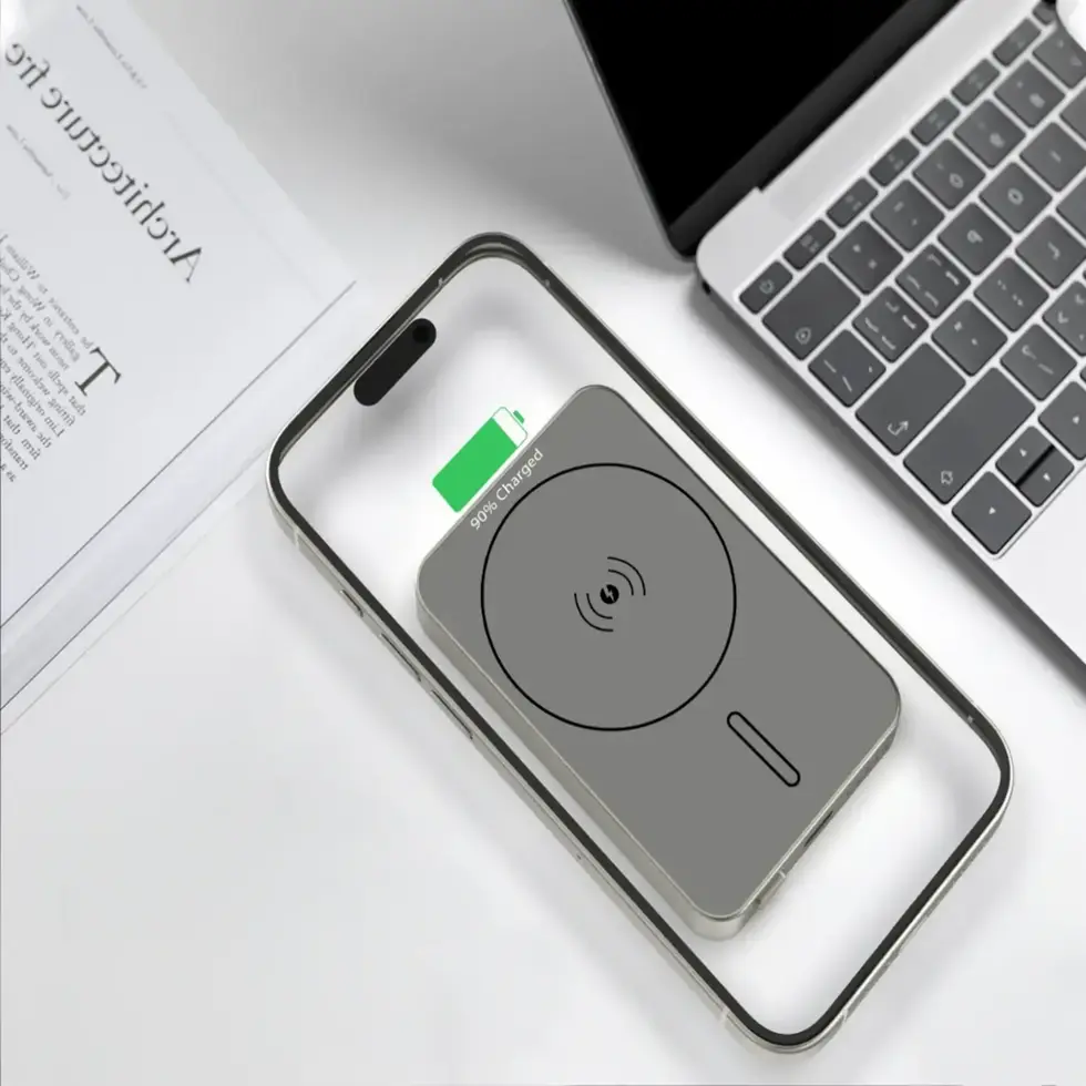 Its strong magnetic alignment securely attaches to supported devices, making wireless charging stable and hassle-free. The slim body design allows for comfortable pocket storage, while the LED indicator keeps you informed of the remaining battery level at all times.